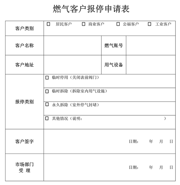 燃?xì)饪蛻魣?bào)停申請表